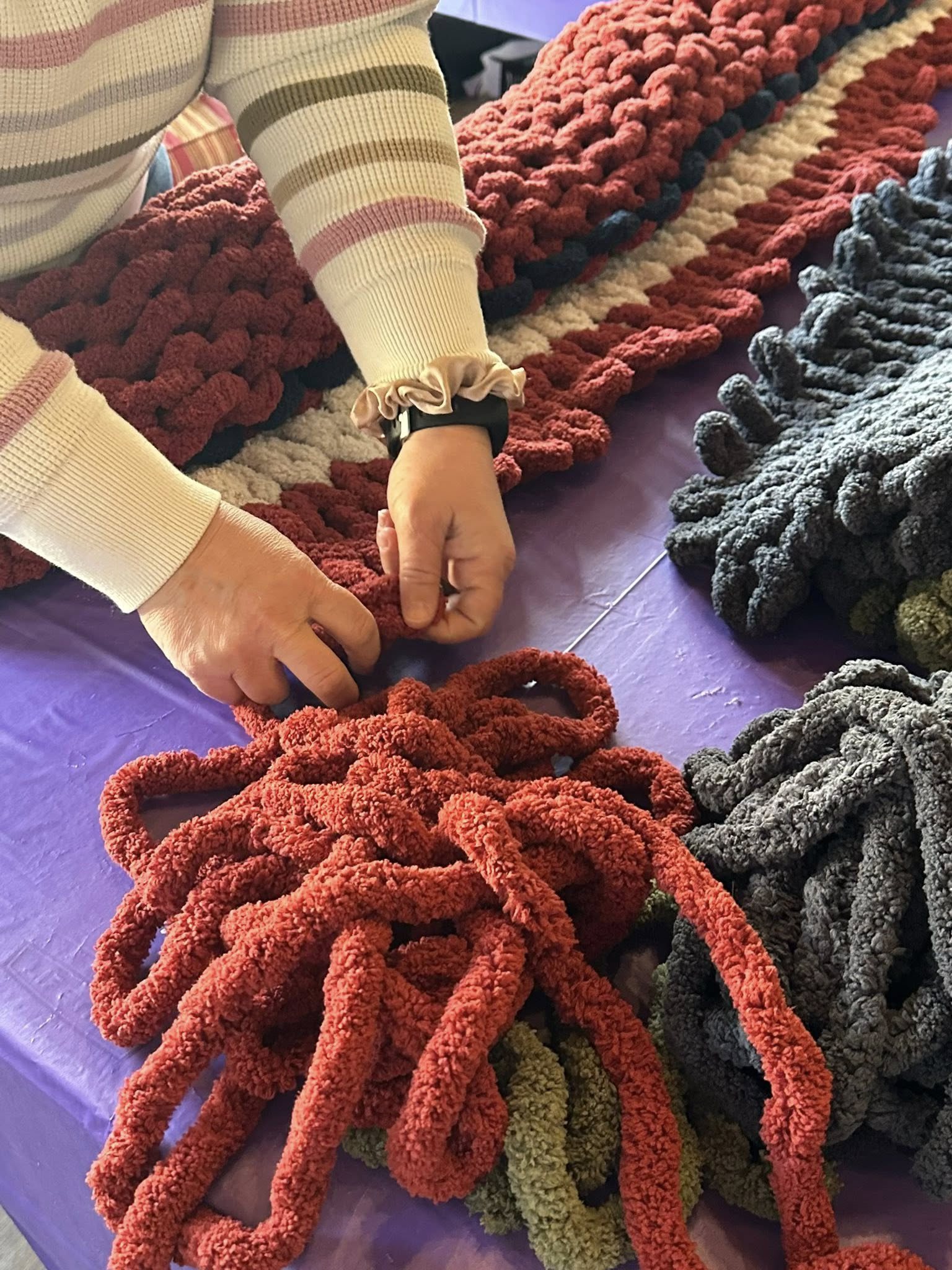 (My blanket has 4 plum, 1 charcoal, and 3 cream)