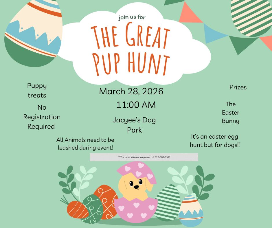 Join us for another year of puppy treats and Easter fun, on March 28, 2026 at Jaycee’s Dog Park!