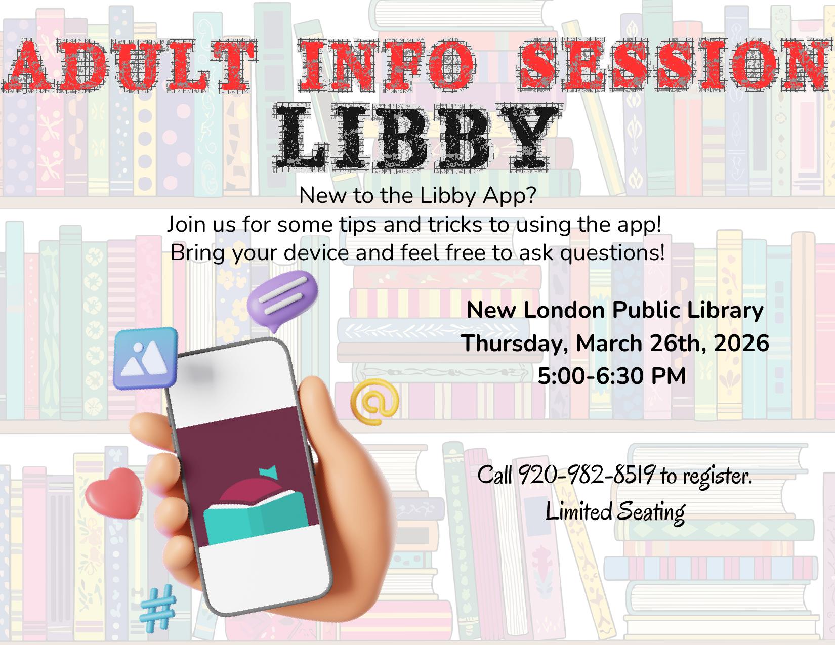 New to the Libby App? Join us for some tips and trick to using the app. Bring your device and feel free to ask questions. Call 920-982-8519 to register. Limited seating.