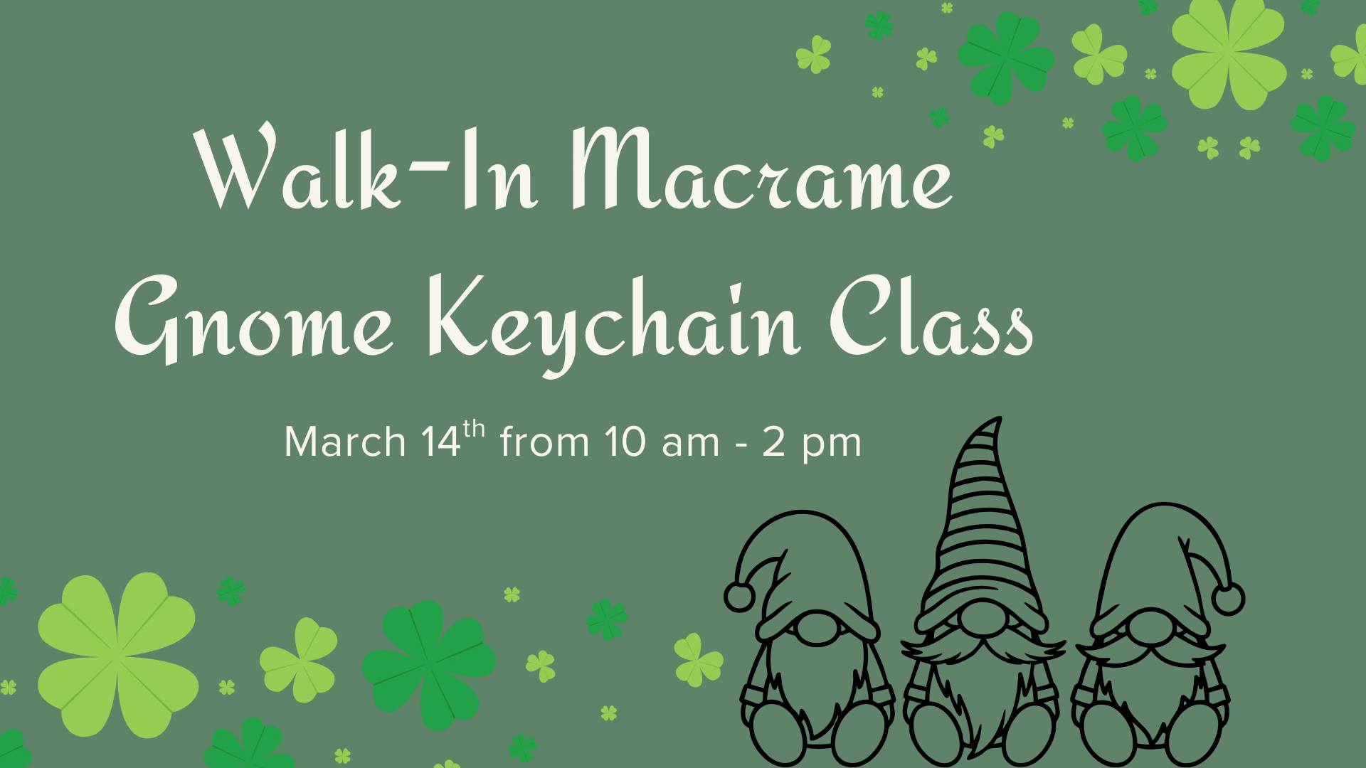 Create something cute for St. Patrick's Day with these macrame gnome keychains! They are the perfect little addition to your keys! This will be a guided walk-in event where we […]