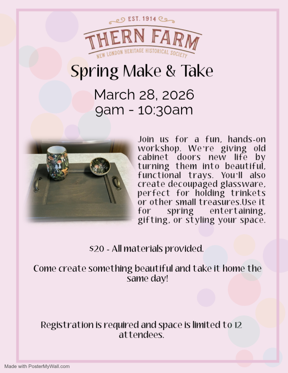 Join us for a fun, hands-on workshop. We're giving old cabinet doors new life by turning them into beautiful, functional trays. You'll also create decoupaged glassware, perfect for holding trinkets […]