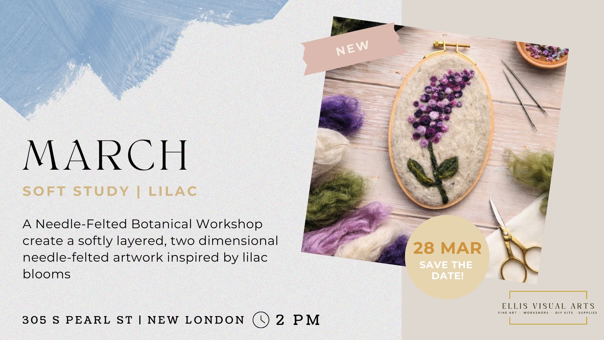 Soft Study | Lilac — A Needle-Felted Botanical Workshop Participants will create a softly layered, two-dimensional needle-felted artwork inspired by lilac blooms, using dyed wool fibers to “paint” with texture, […]