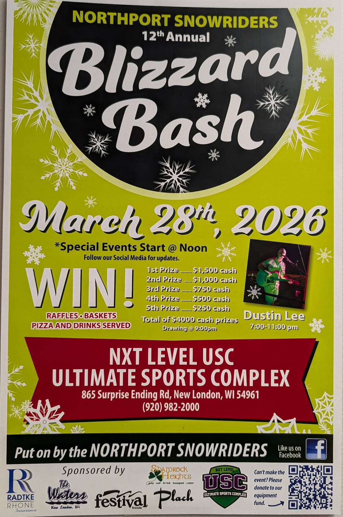 Special events start at noon. Raffles, pizza and drinks! Dustin Lee will be there from 7-11pm.