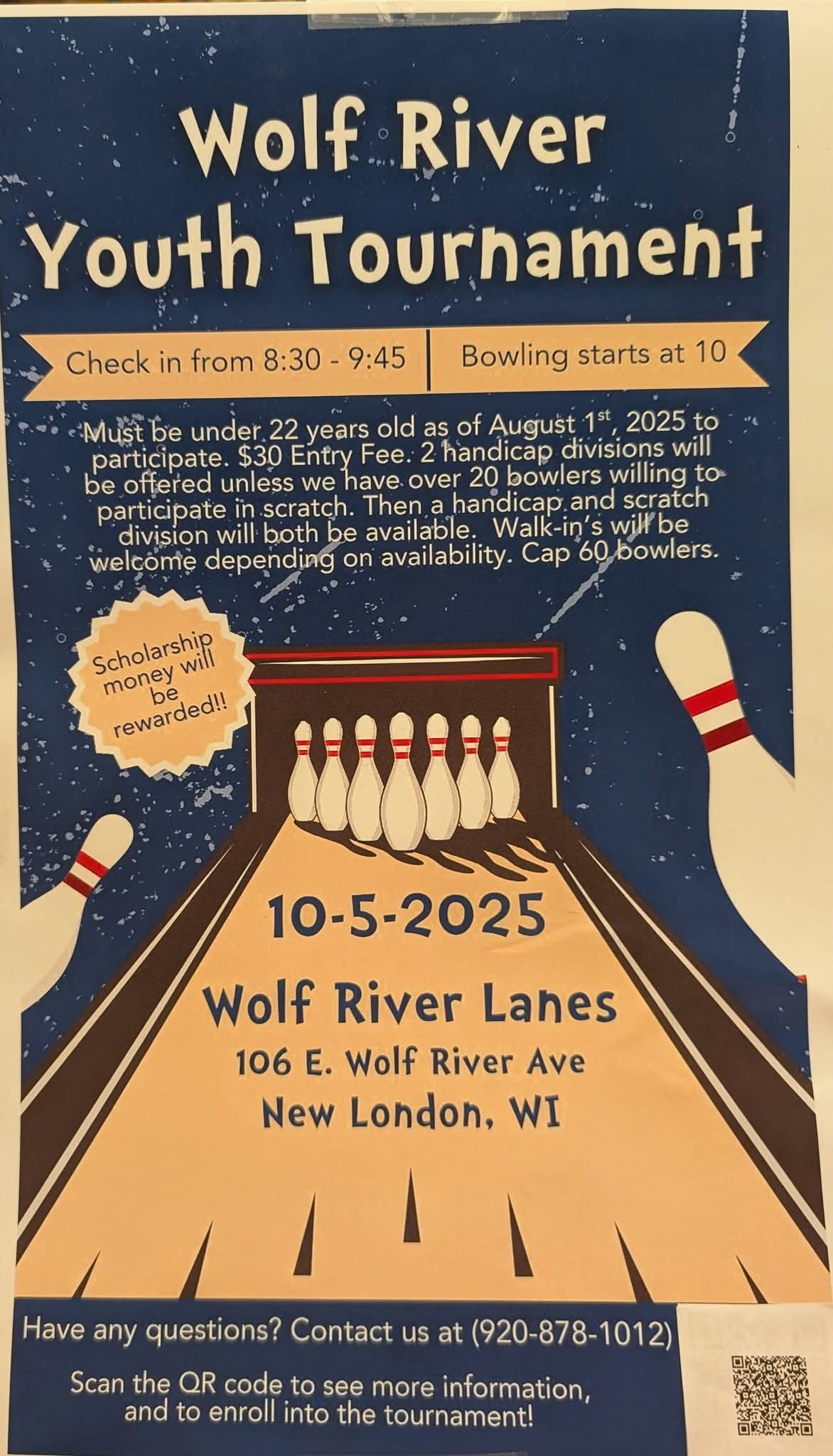 ![]() Youth Sanctioned Bowling Tournament this Sunday come on down and try your luck. Scholarship money will be rewarded! Tap on this photo and sign up using the QR code on the bottom, pay the day of the tournament at the door.