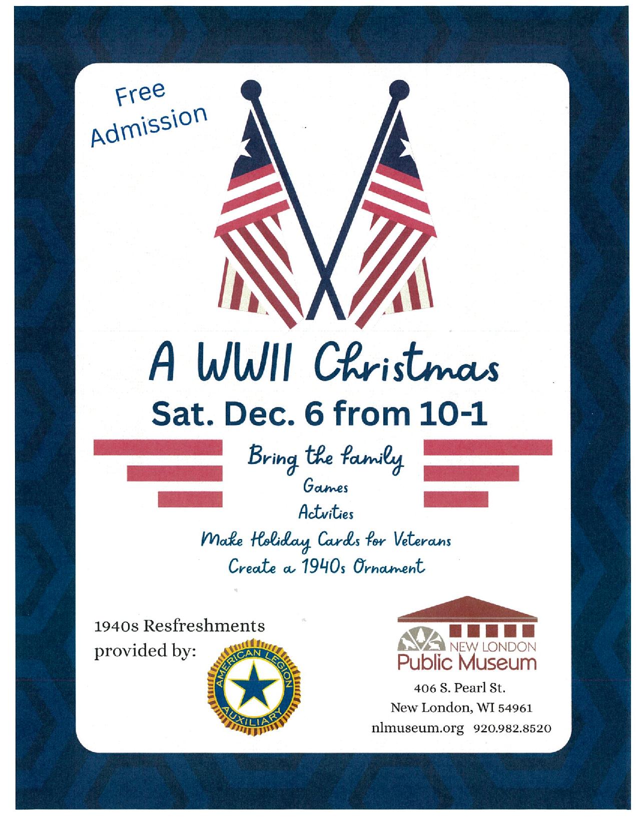 Bring the family, games, activities, make holiday cards for Veterans, create a 1940's ornament.