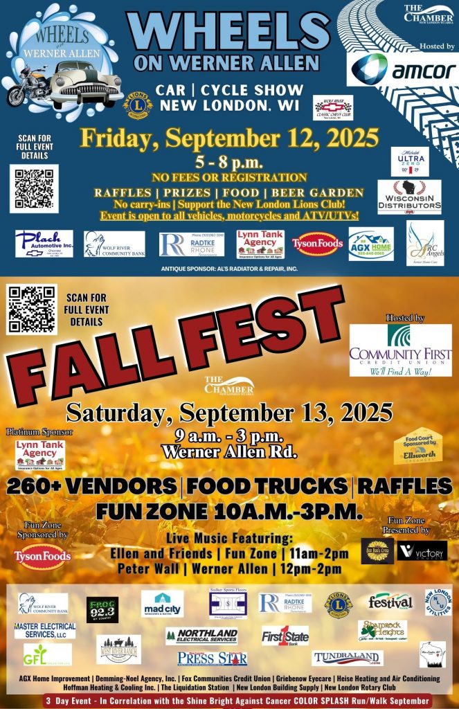 Stay connected by following our Fall Fest Event Page on Facebook for updates, featured vendors, and next year’s entertainment lineup. We can’t wait to see you back in New London for another weekend of family fun, food, and memories that last a lifetime! 🌽🎉🚗 |