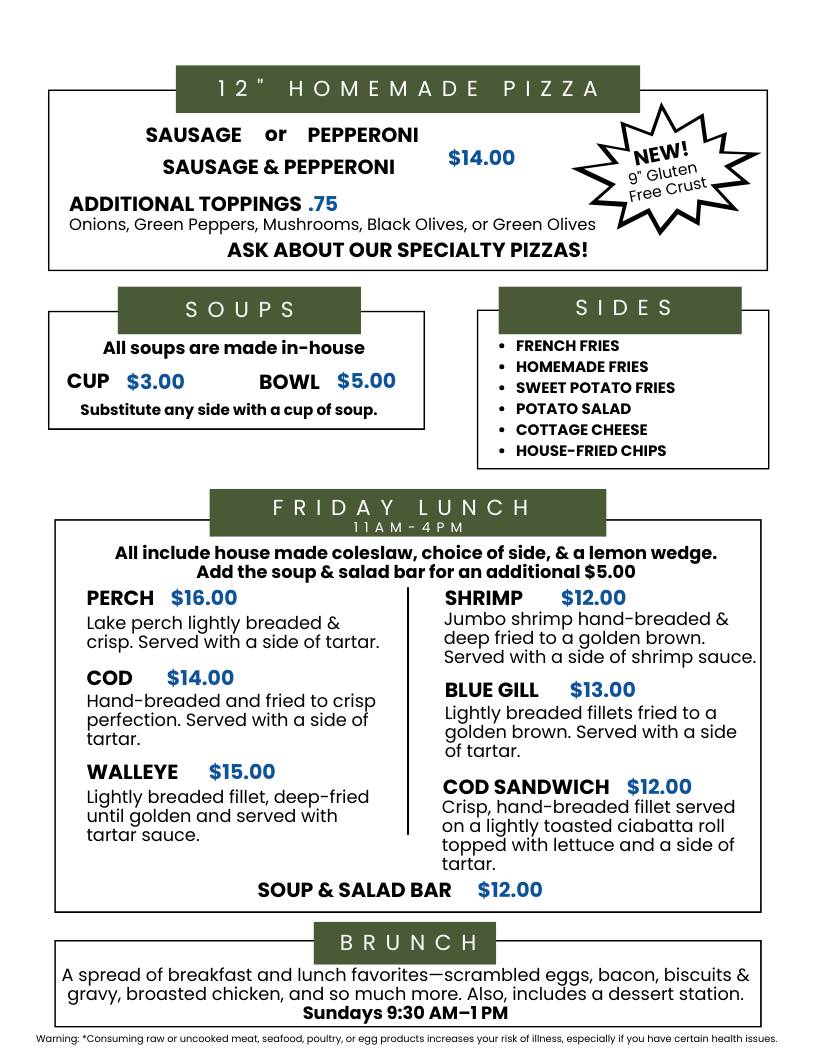 Sunday Brunch: 9:30-1pm