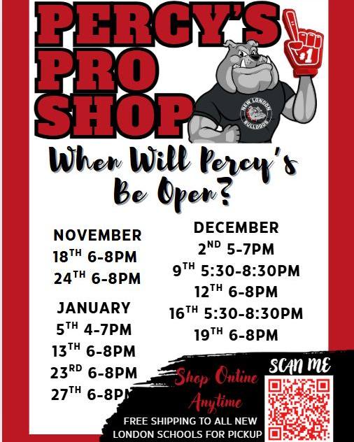 Percy's Pro Shop (located in the NLHS Commons) will be open the following dates, but feel free to shop online anytime!