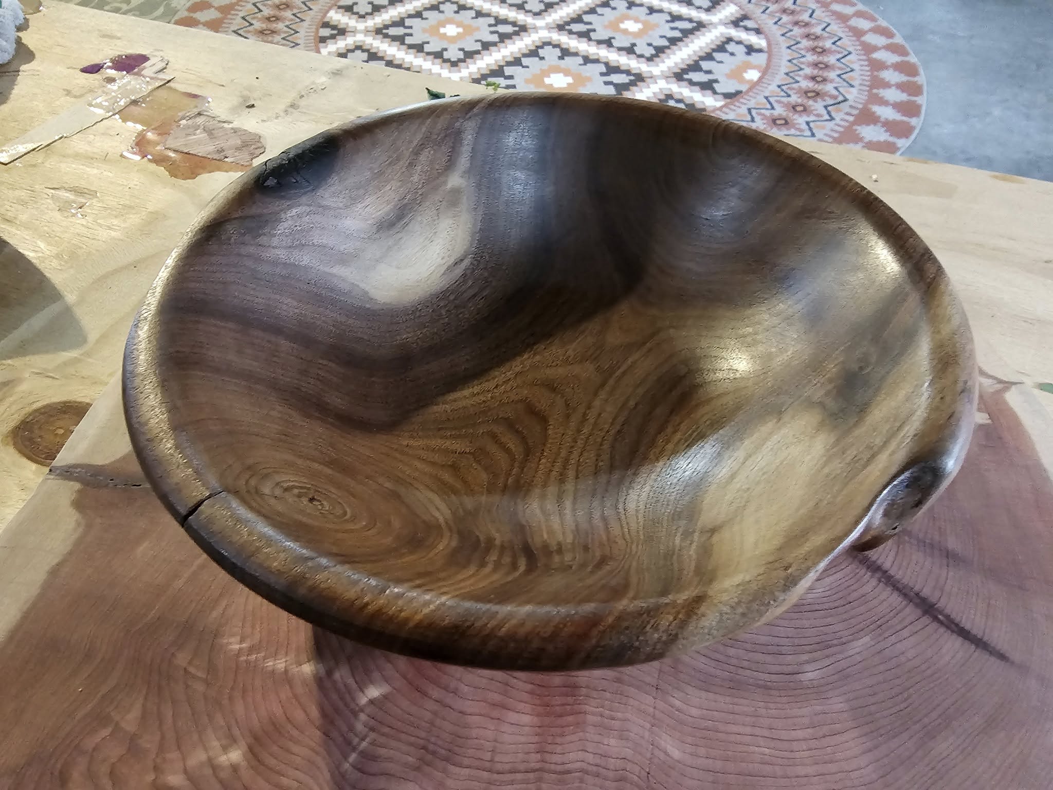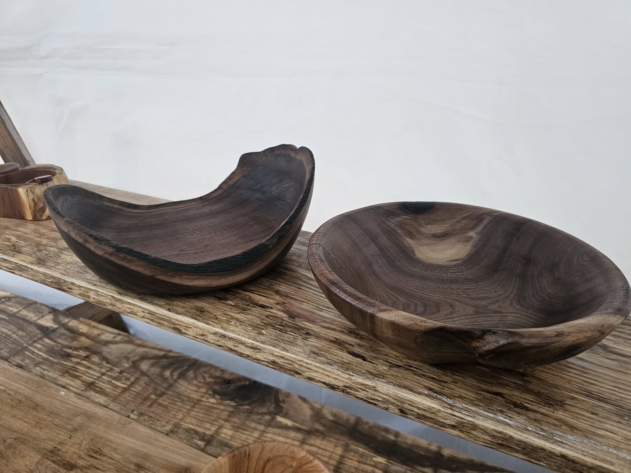 Two black walnut bowls from the same piece of wood. Turned out nice.