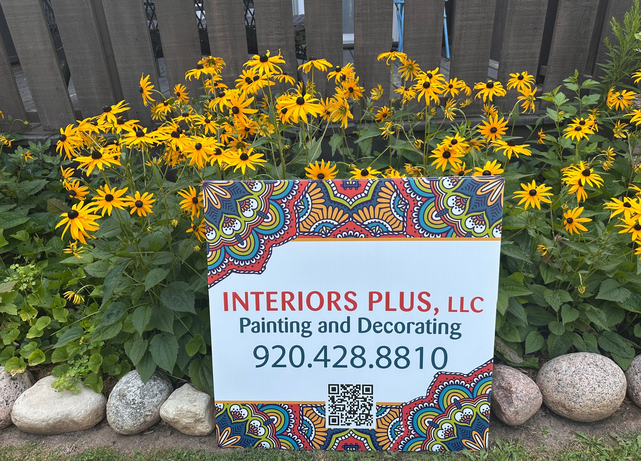 This full color 2-sided yard sign is 18x24 and comes with a sturdy stake. The QR scans from approx. 8-10 feet away.
