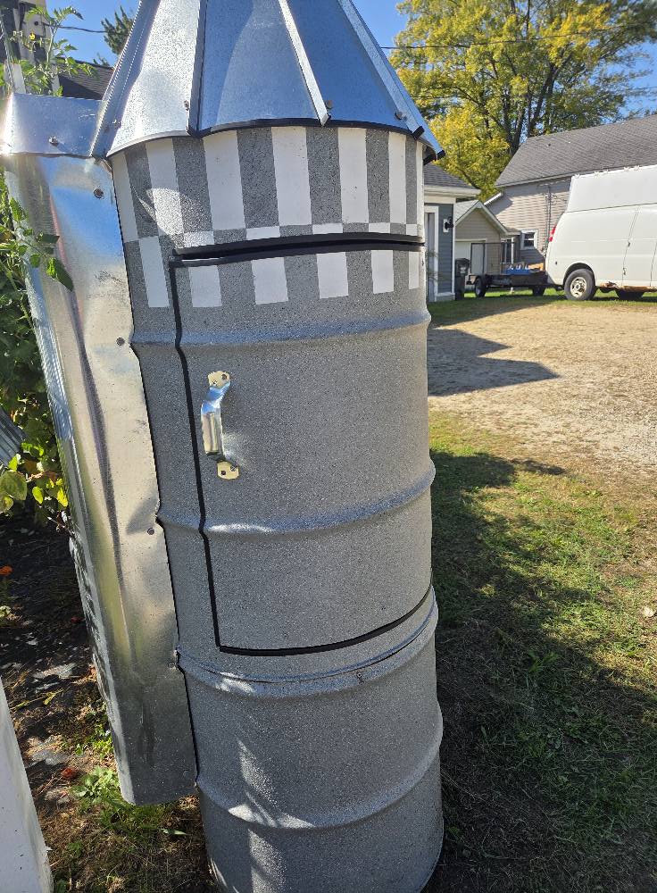 609 N Shawano st New London Wi. Big blue house across the street from the sheds. The Silo in on the edge of our driveway next to the red barn sign.