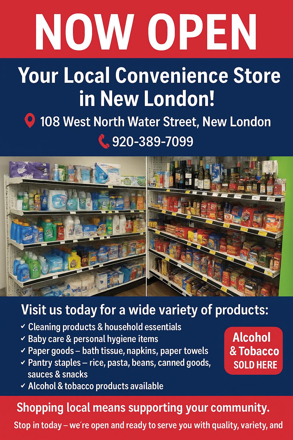 We’re excited to announce that our local convenience store at 108 West North Water Street, New London is now OPEN.